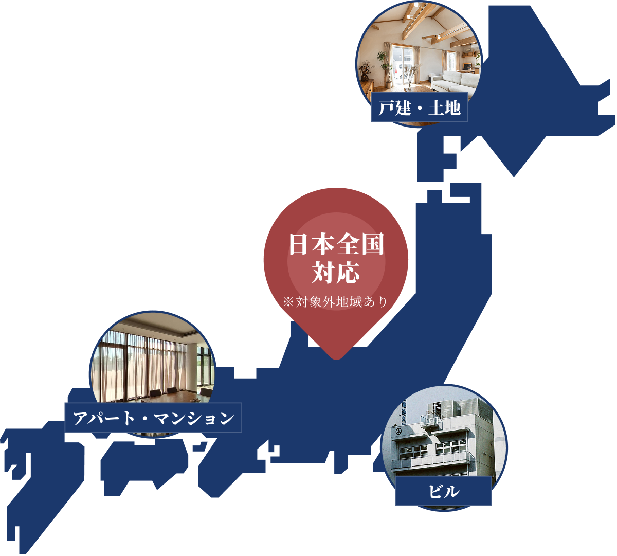 現地調査や立ち会いが必要な場合も、沖縄など一部対応外エリアを除く全国に対応。お急ぎの案件には、ZOOM相談など柔軟な対応ができ、安心してご相談いただける体制を整えています。